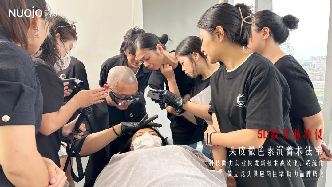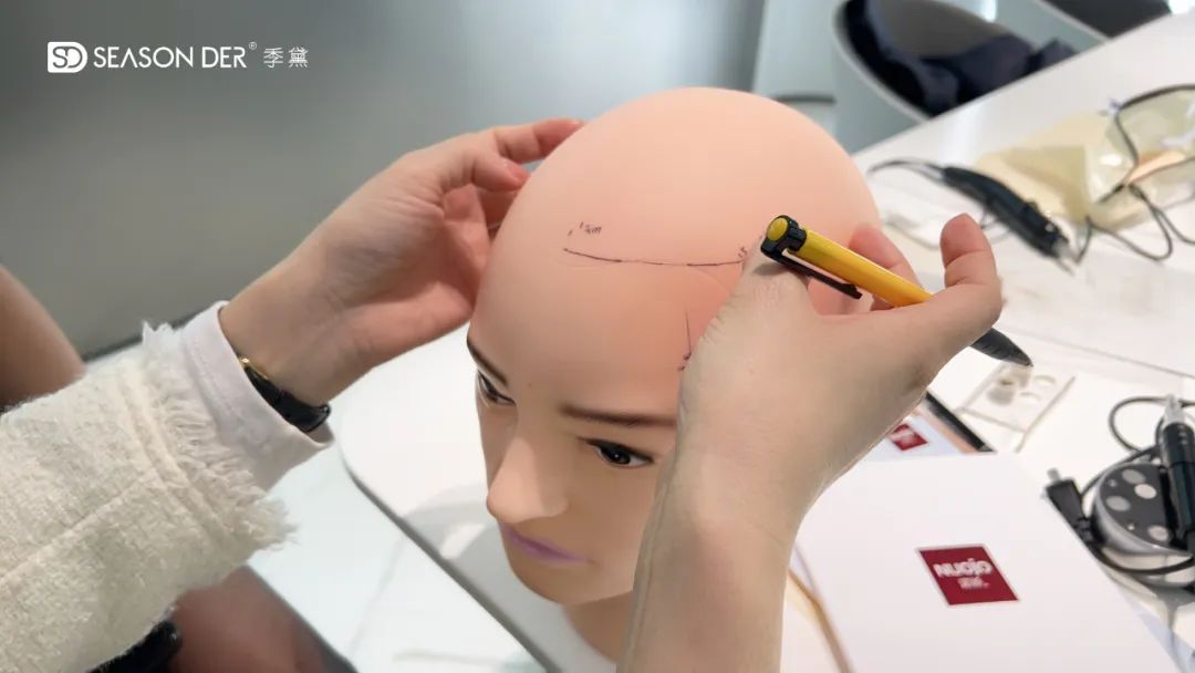 SMP纹发与传统纹绣底层逻辑相通(色素沉积+皮肤修复),但操作面积扩大10倍以上。通过季黛5D仿真毛囊脉冲仪,纹绣师可快速实现: